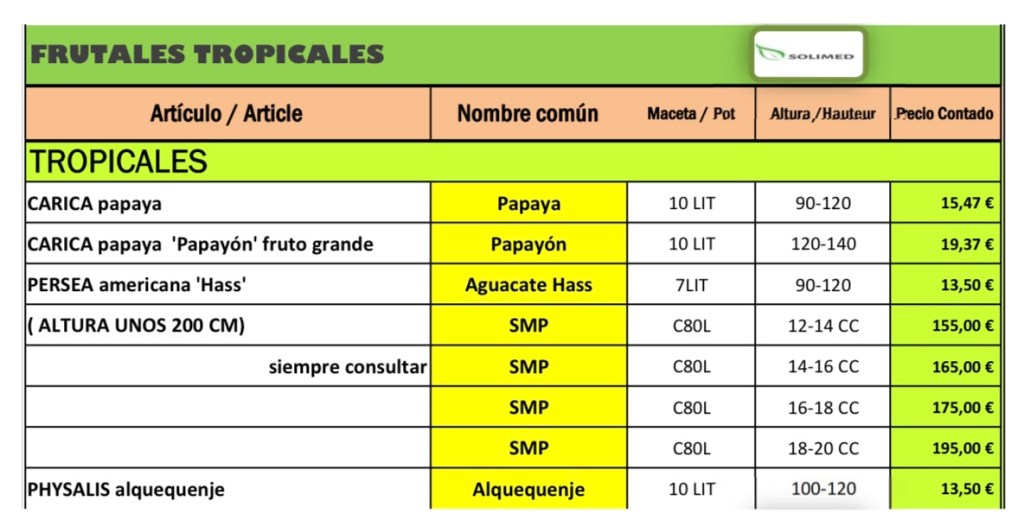 ARBOLES Y PLANTAS DISPONIBLE 2024